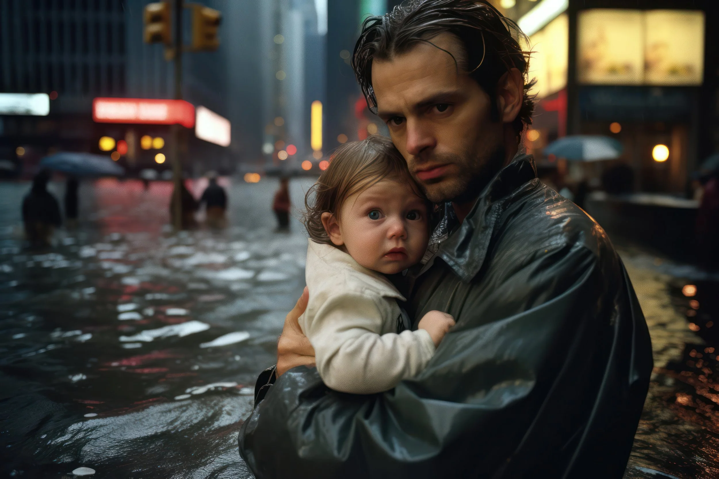 100 piece collection of Post Photography exploring ideas of truth in images in a Post AI world. BAPTISM explores a fictional flood of Manhattan in the 1990s
