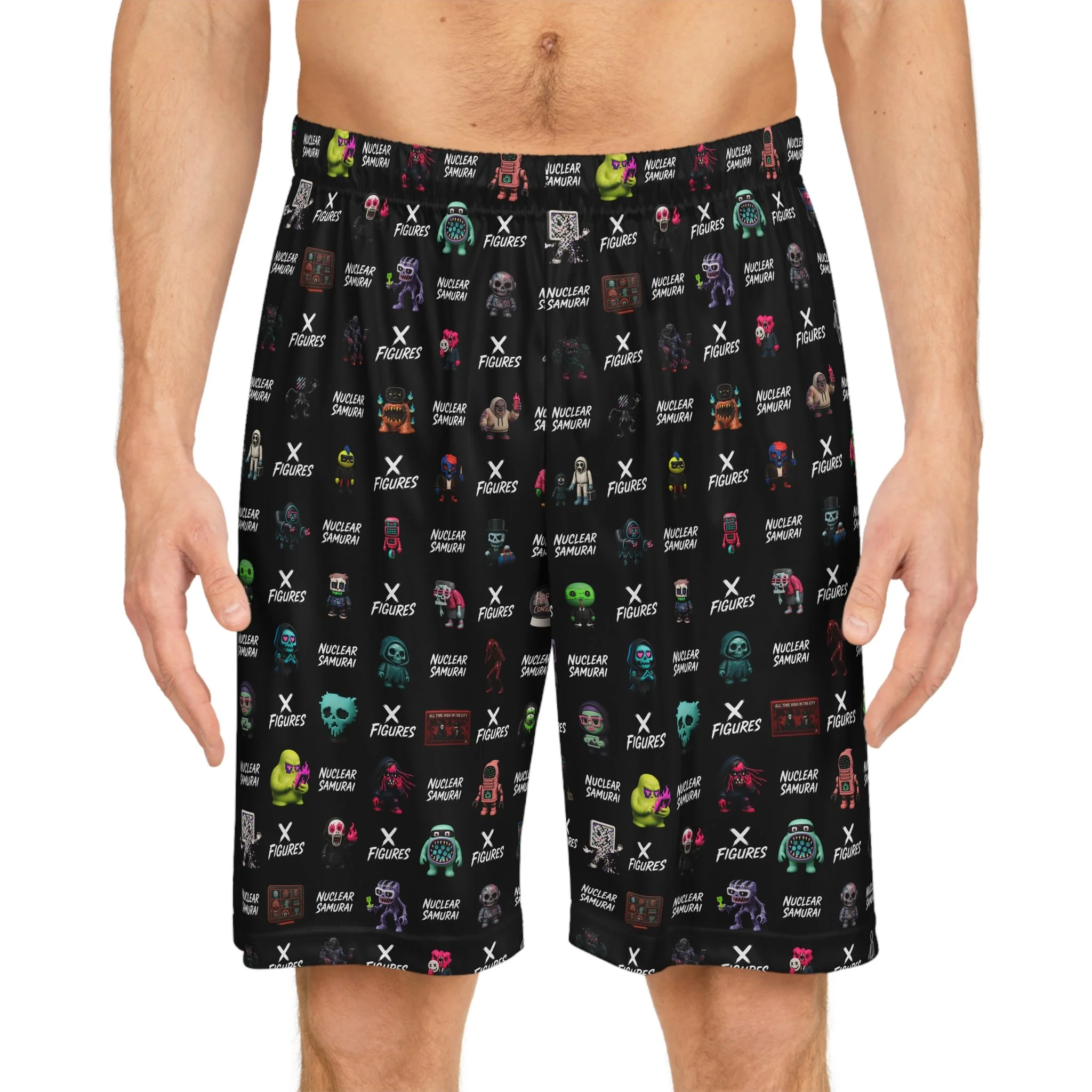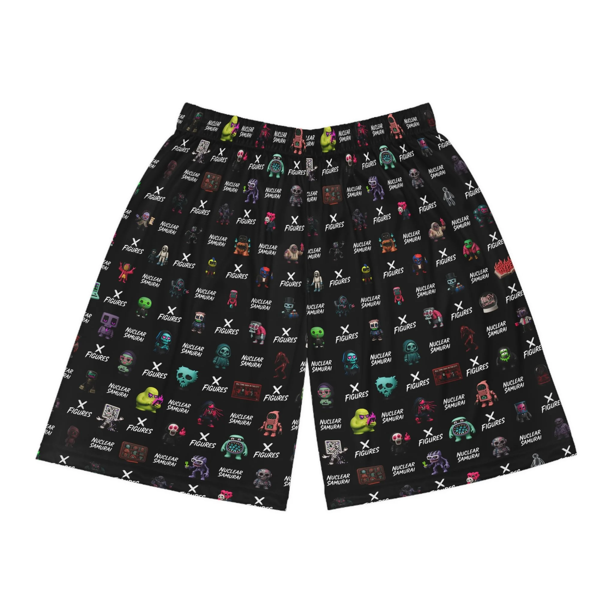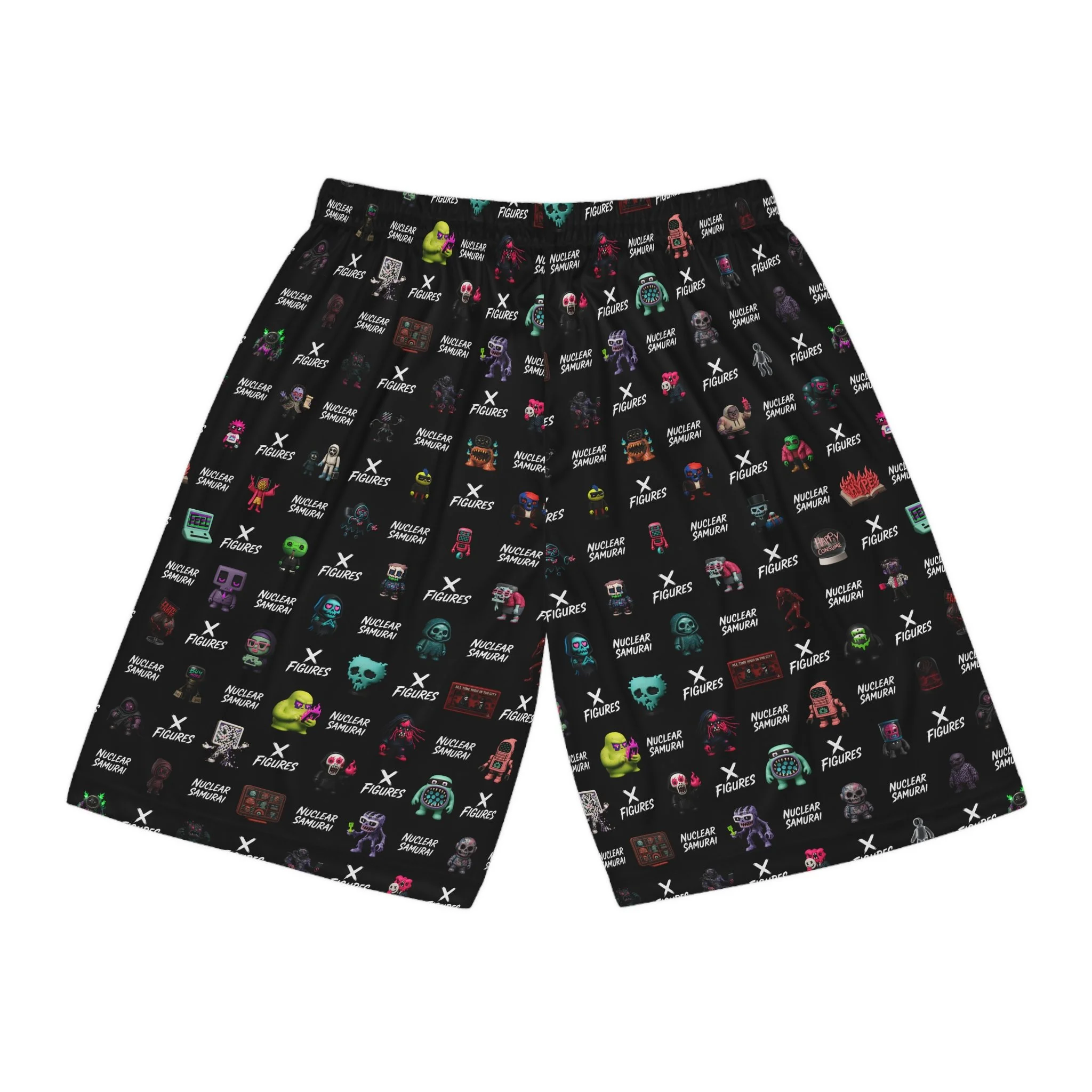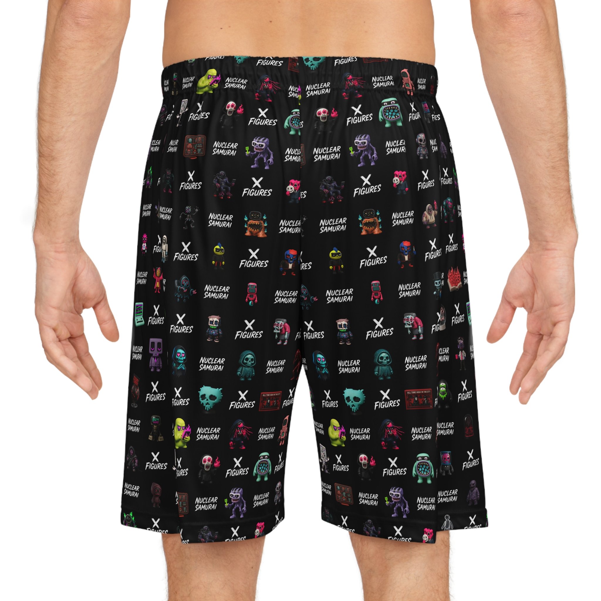 These lightweight basketball shorts bring playful, gamer-inspired energy to everyday movement. The all-over print features tiny pixel art icons and retro gaming phrases on a deep black field, so the pattern reads bold from a distance and reveals quirky details up close. Cut for free movement and made from quick-drying polyester, they feel airy during drills, runs, or relaxed hangouts. The elastic waistband with inner drawstring keeps the fit secure without digging in, while printed care and size info inside the band keeps the exterior clean. No pockets keep the silhouette sleek and streamlined. Wear them for practices, late-night gaming sessions, or when you want a sporty piece that shows off personality without shouting.