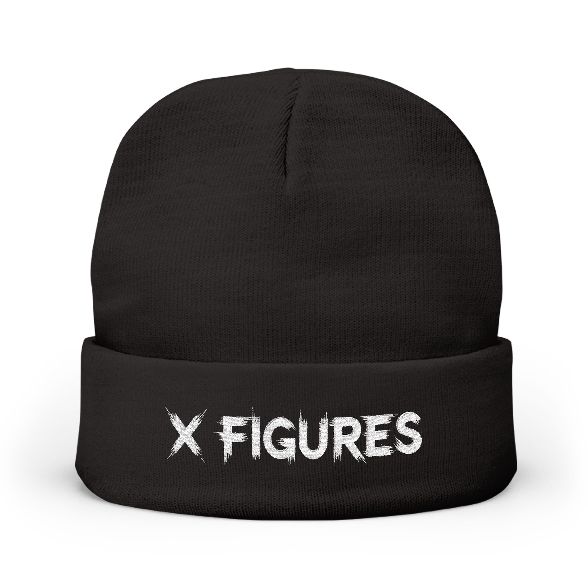 X Figures Embroidered Knit Beanie — Cozy Black Winter Hat with Bold Logo